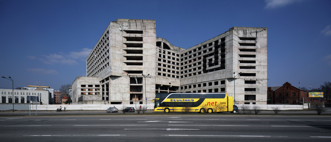 Der Raum wird in diesen Bildern zur Bühne, und auf ihr gewinnt der Mensch an Bedeutung. Und zwar auf eine äußerst diskrete, beiläufige und unpathetische Weise, hinter der indes unausgesprochen ein Pathos tönt, das wir von Sophokles kennen: „Ungeheuer ist viel, doch nichts ist ungeheurer als der Mensch.“ Dieser Eindruck wird noch gesteigert, wenn der Raum für einen einzelnen Menschen zu groß erscheint, um ihn zu beherrschen, wie die Fußballarena, in der er ganz allein steht. Oder wenn der Raum eines Vorstandsvorsitzenden sich im Bild krümmt und windet, als wolle er seine einschnürende Architektur abschütteln und einer Empfehlung von Karl Marx folgen, der davon gesprochen hat, man müssen den Verhältnissen ihre ureigene Melodie vorspielen, um sie zum Tanzen zu bringen.